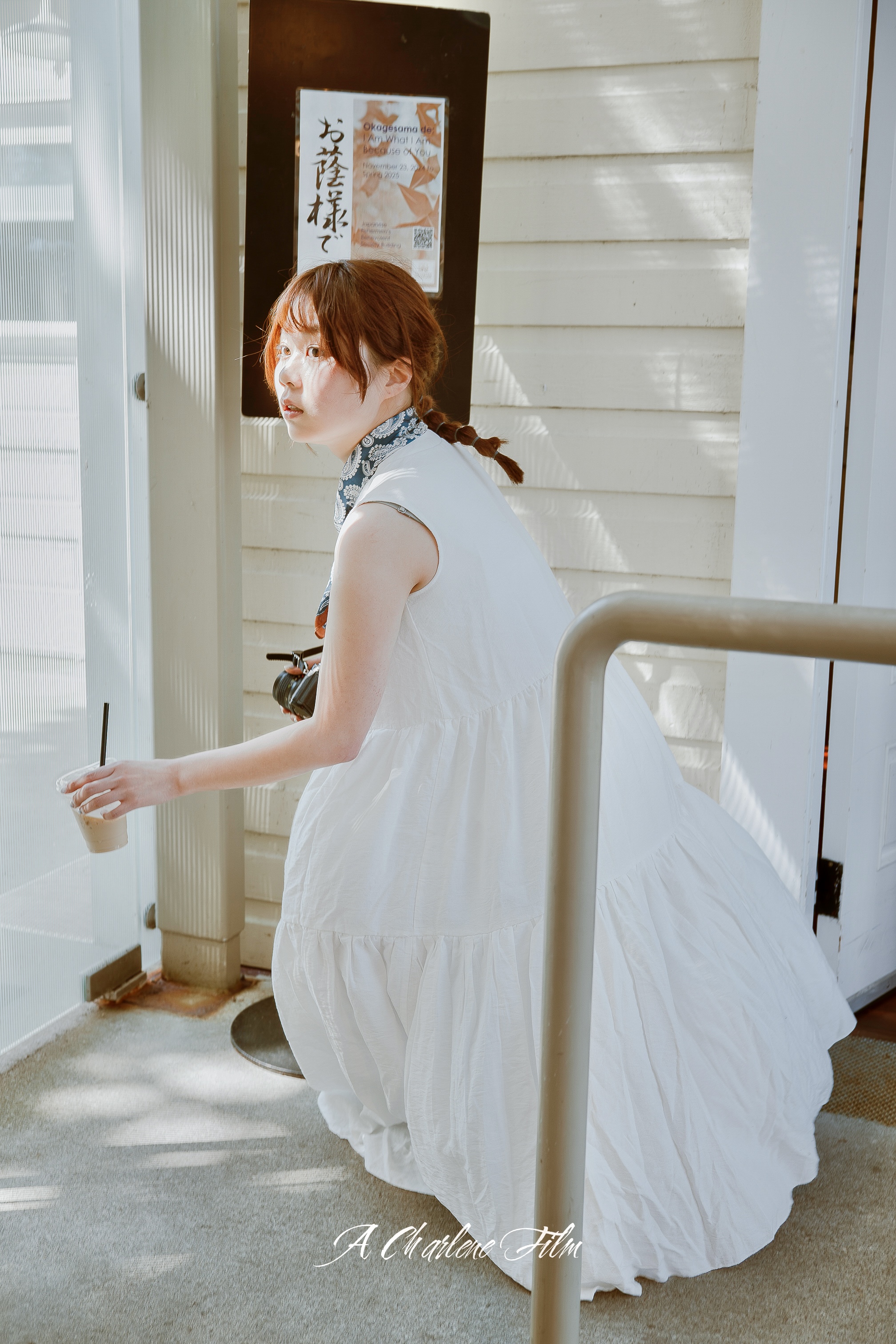 This summer, I walked alongside Steveston Fisherman's Warf with a friend, who was in a white dress and taking photos for her school project with an old film camera. I captured her as she walked and looked around, sometimes her sudden smile, too.