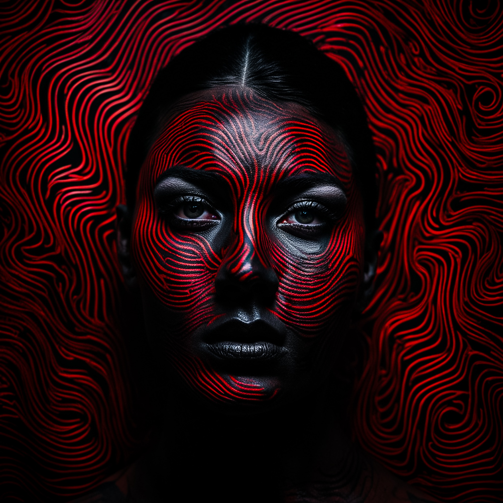 This photo series is part of an ongoing research project that explores how human emotions can be translated into visual art using AI. The system begins by detecting emotions from either text or audio using an emotion classification model. Based on the identified emotion, an open-source language model generates landscape-inspired visual descriptions. From these descriptions, the system deduces likely color palettes, shapes, and compositional patterns associated with such environments and emotions. These visual cues are then artistically embedded onto human faces through AI-powered image generation, blending abstract patterns with portraiture. Each image in the series embodies a specific emotion—such as fear, serenity, euphoria, etc—through expressive facial designs, flowing painted motifs, and emotionally aligned color harmonies. While this explanation offers a simplified overview, the full AI pipeline involves a deeper integration of computational and generative techniques, which will be documented in a forthcoming technical research paper. The goal of this work is to promote social good through applications in art therapy, mental health, and emotional storytelling. Photo 1 denotes the emotion euphoria, Photo 2 denotes the emotion curiosity, Photo 3 denotes the emotion fear, Photo 4 denotes the emotion wonder, Photo 5 denotes the emotion melancholy, and Photo 6 denotes the emotion serenity.