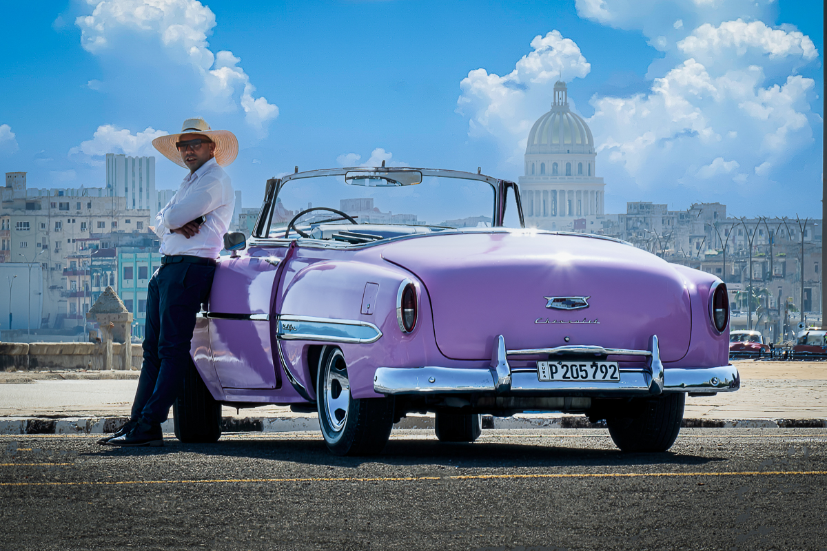On a sweltering Sunday morning, I walked down to the seawall boulevard where drivers of classic American 1950s cars park and wait for riders. I waited and waited until I was able to capture this image, which to me is almost quintessential Havana. The driver in his wide sombrero hat, the 1954 Chevrolet Convertible, and the Cuban Capitol in the hazy background tie it all together. It was a grey morning, so I reluctantly chose a more interesting sky replacement for the bright early morning. Because I was shooting into the sun, the driver was almost a complete silhouette; it took a good bit of post-processing to increase the exposure and decrease the shadows to reveal the driver’s bemusement at the photographer! Post-processing in Lightroom, Photoshop, On1, and Luminar.