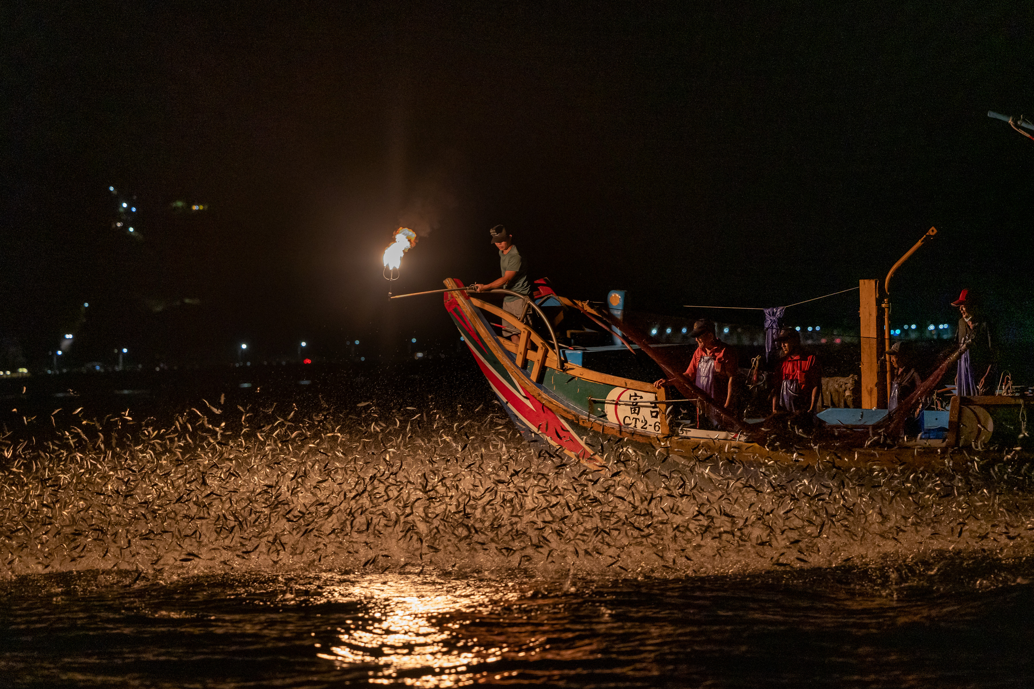 Jinshan Sulfur Fire Fishing, known as Bong Fire Fishing, is a century-old method unique to Jinshan, Taiwan. By igniting sulfur at night, fishermen create bursts of fire that attract fish, causing dazzling leaps under the dark sky. It's the only technique of its kind left in the world and has been listed as an Intangible Cultural Heritage of New Taipei City since 2015.