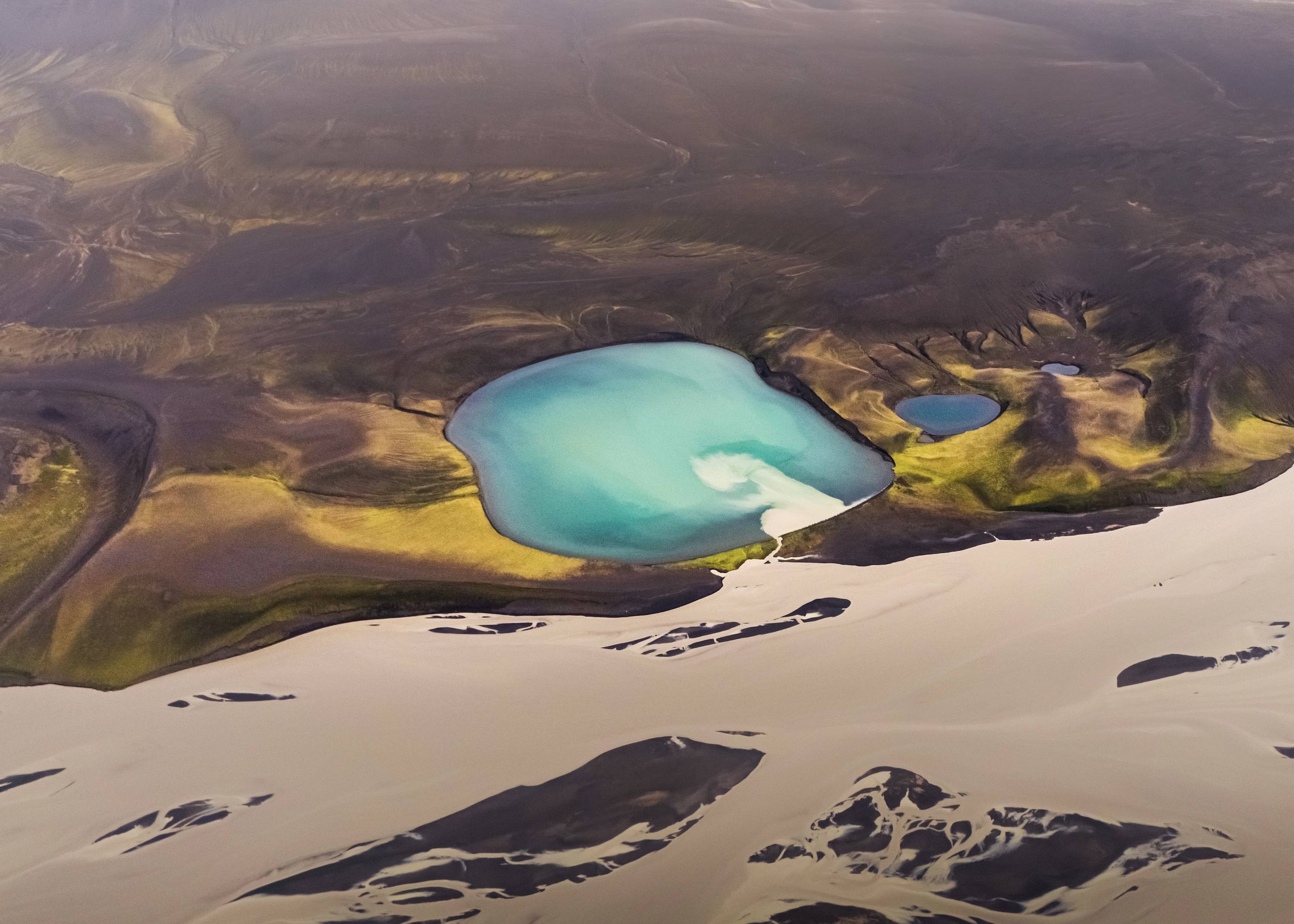 Flying above Icelandic highlands I noticed some very new formation in my favorite crater lake. Glacial River entered the lake and suddenly it looked like a baby in the mothers womb. It looked like the earth will become a mother.