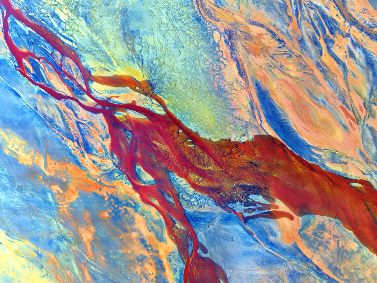 I captured these stunning abstract colours, patterns and textures while flying over a tailing pond in a nickel mine in remote Western Australia.