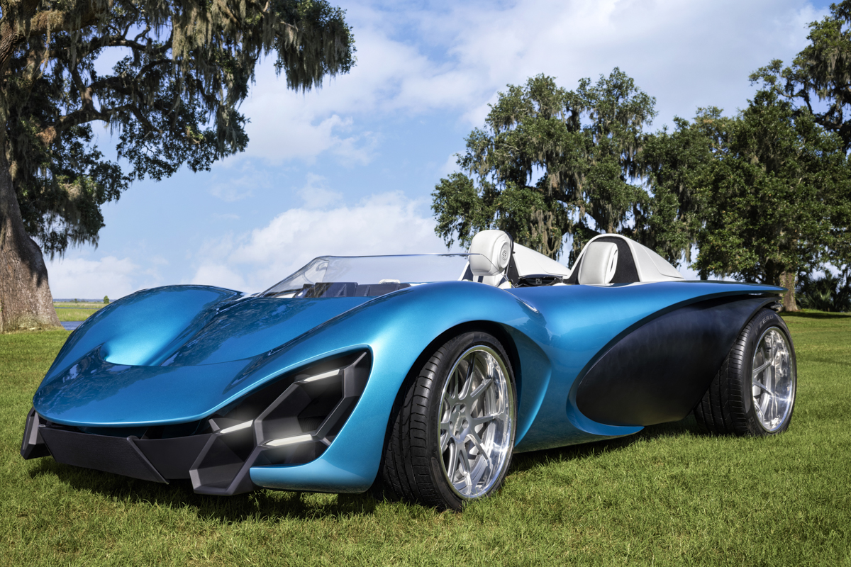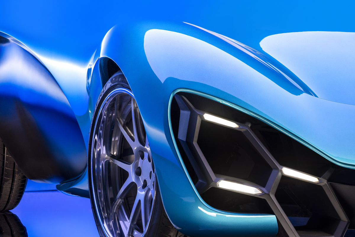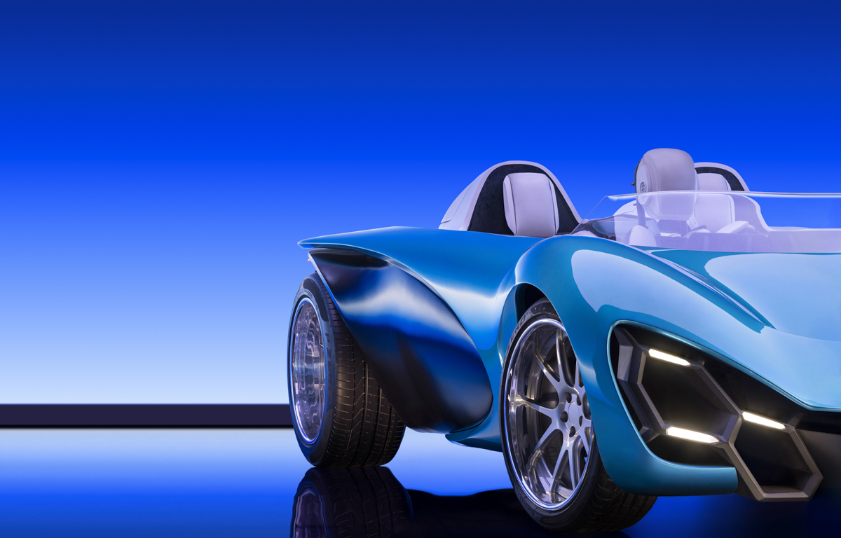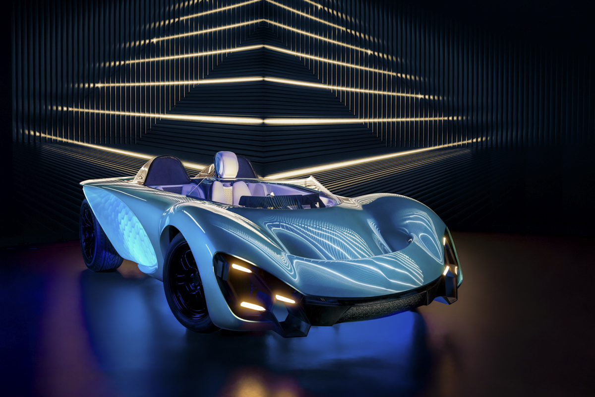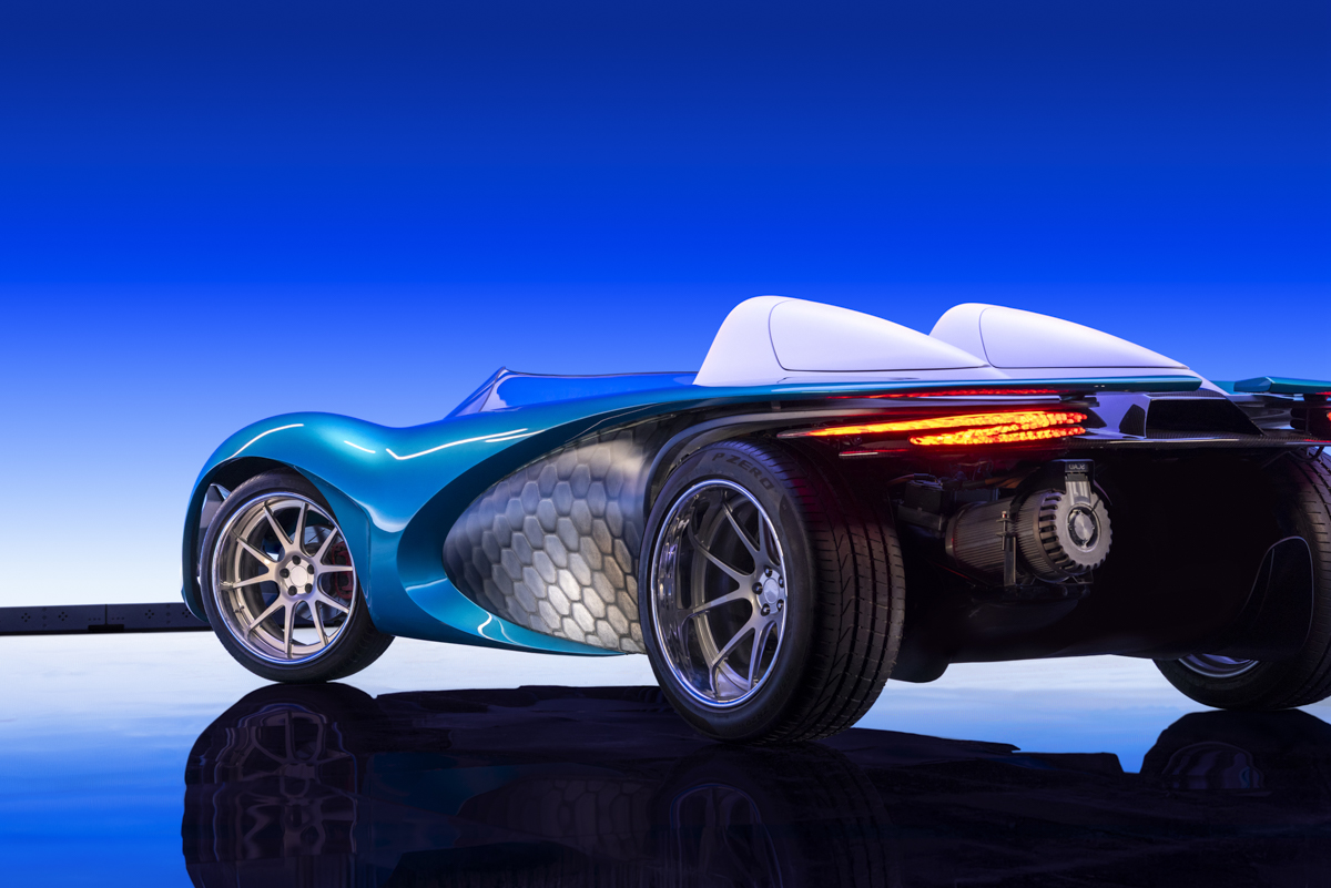 Showcasing an electric car designed by SCAD Industrial Design students, captured on an XR stage for a futuristic feel