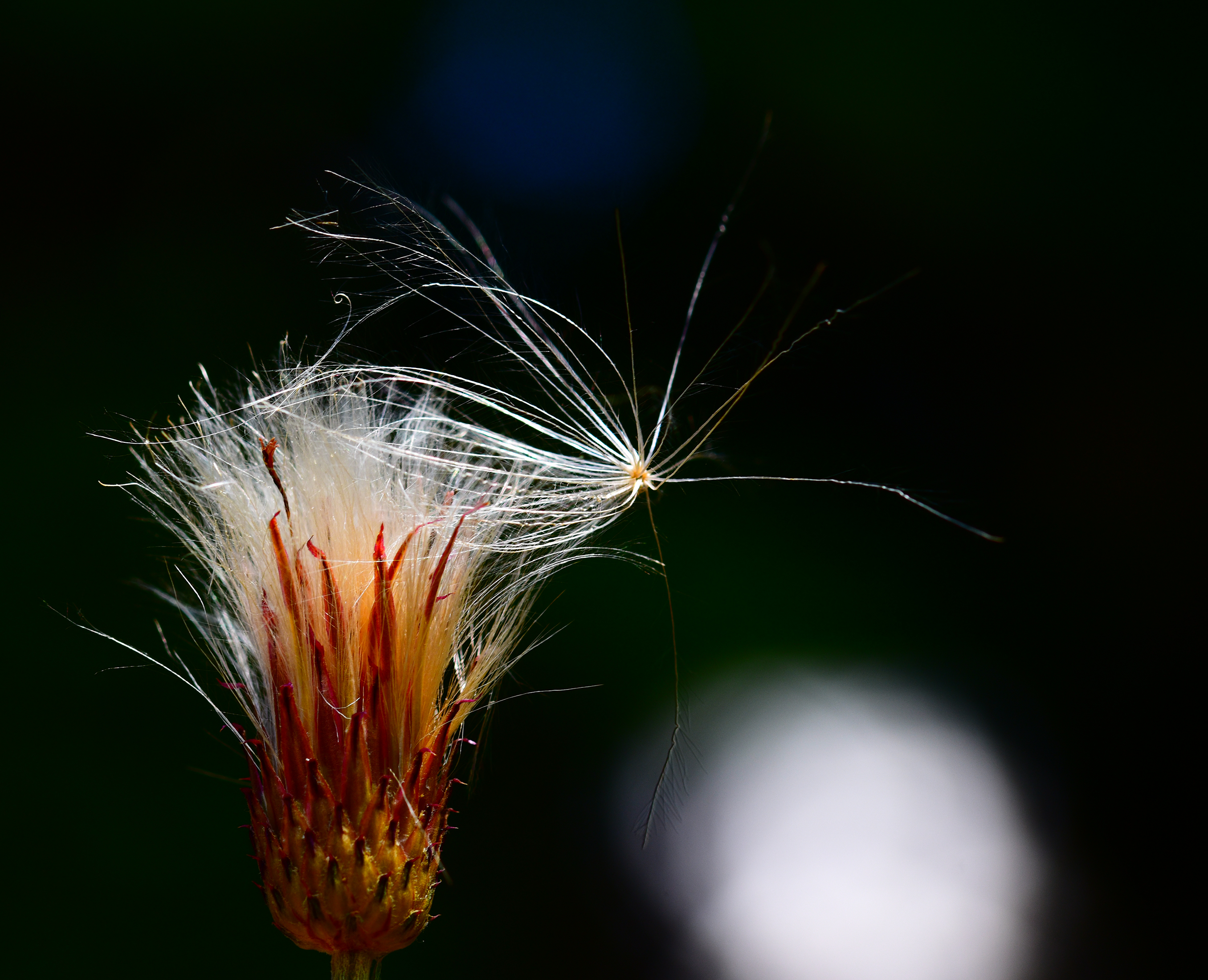 Captured in natural midday light, this photograph transforms a fleeting seed into a symbol of delicacy and strength. Through contrast and color, it reflects the fragile moment between stillness and flight.