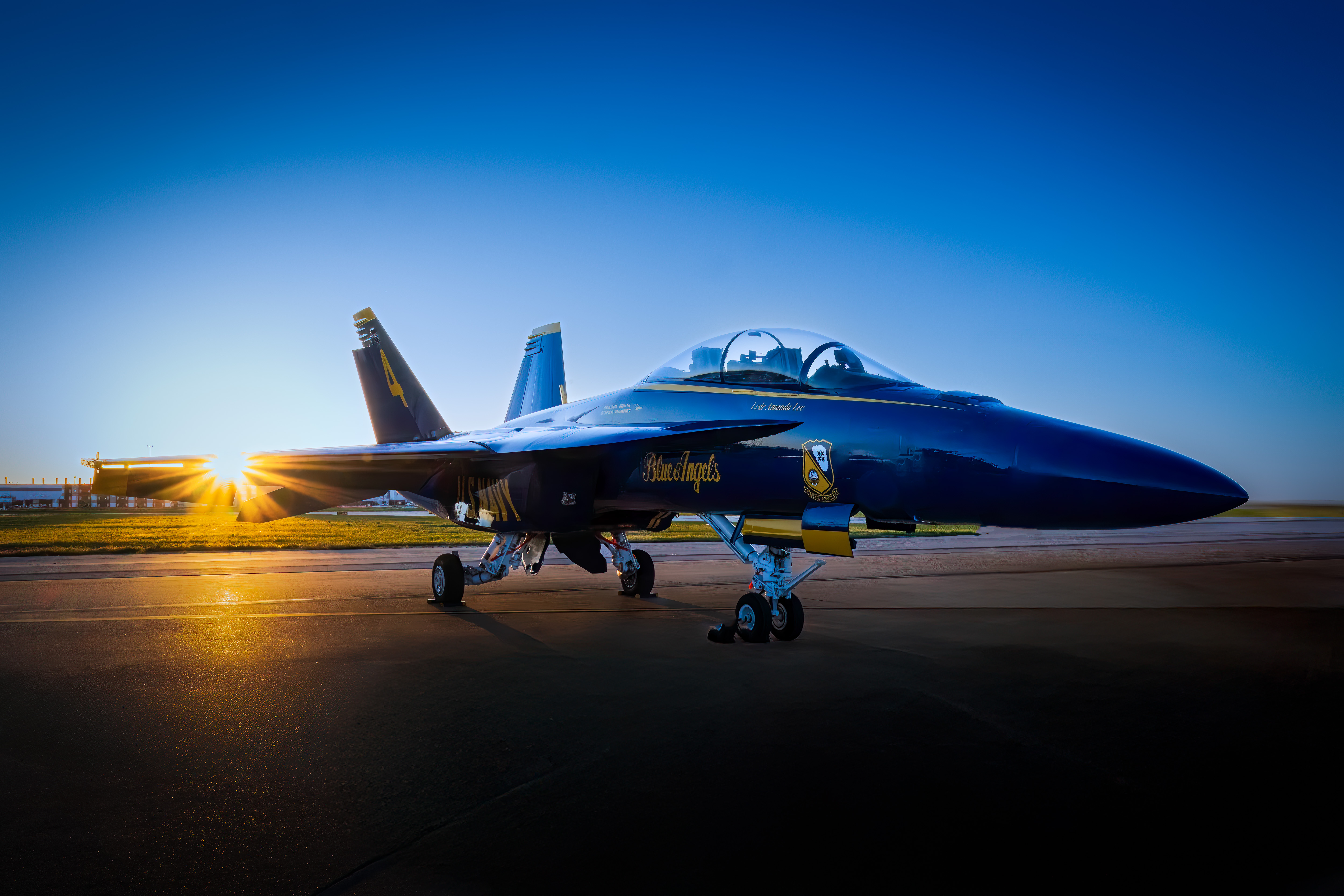 I received special access to the flight line at NAS JRB Fort Worth when the six Blue Angels F/A-18s were parked in a row the evening prior to their first performance in Fort Worth. It was exciting to have unfettered access to these aircraft for an hour during Golden Hour to shoot these magnificent aircraft at all angles. As the sun was descending in the sky, I was able to capture this sunburst off the wing of aircraft #4, piloted by LCDR Amanda Lee, the Blue Angels’ first female pilot. Post-processing in Lightroom, Photoshop, On1, Topaz, and Luminar