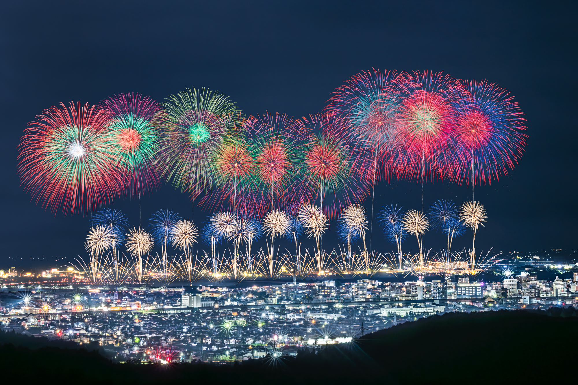 Fireworks bloom across the night sky like a dance of light. Trails intertwine, colors explode in brilliance, and fleeting moments transform the sky into a dynamic canvas of art, evoking awe and delight in every observer.
