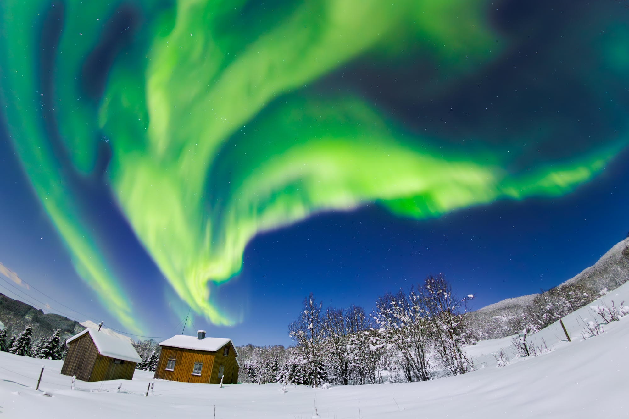 Under the vast northern night sky, a glimmer of light emerges in the distant horizon, the color changes from light green to dark blue, and then turns into purple and gold, flowing across the sky, like a mysterious dancer, spinning lightly and gracefully. The dance of the goddess Aurora. She spreads colorful colors, sketching a flowing picture in the night sky, sometimes like a blooming flower, sometimes like a rolling wave, and like a lively watercolor painting.