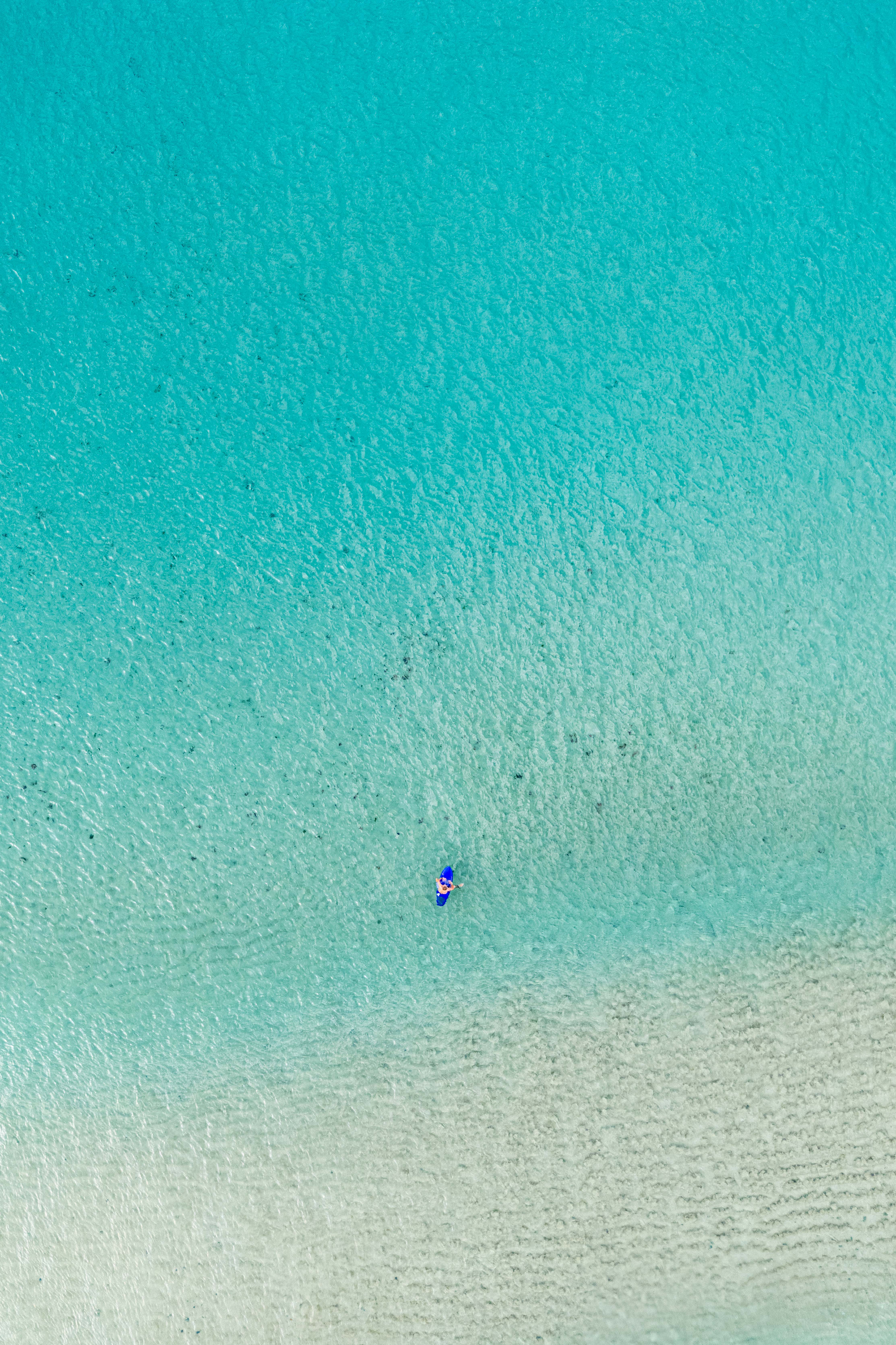 Within this pristine expanse of cerulean blue, a lone figure drifts in quiet solitude. The image seeks to capture a profound sense of tranquility and harmony through minimal elements. Lines, colors, and open space converge to form a minimalist Zen aesthetic, inviting the viewer to reflect on humanity’s place within the vastness of the world and to discover inner peace in simplicity.