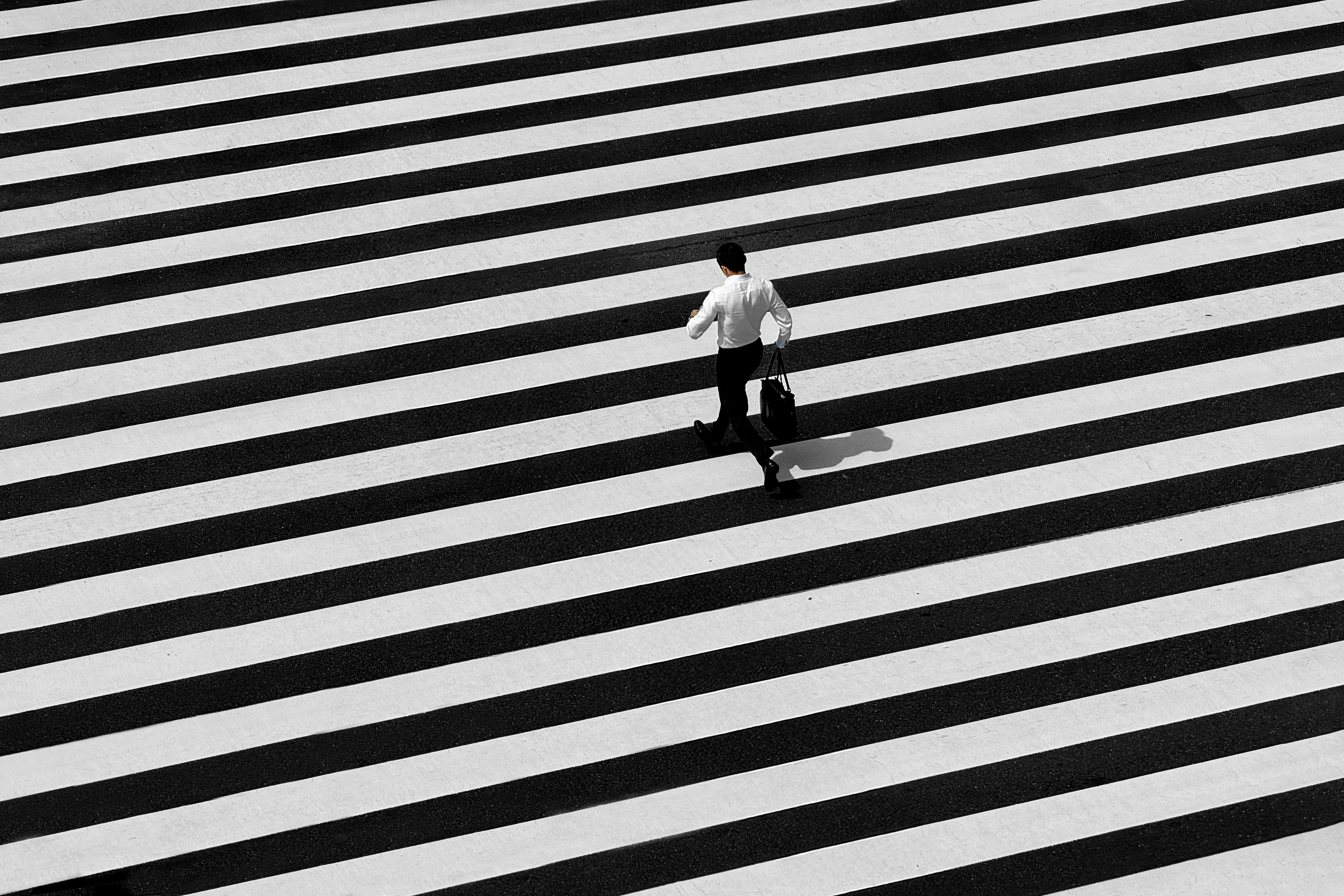 A young businessman hurries as the last one to make it across the crosswalk outside Tokyo's busy Shinjuku Station.