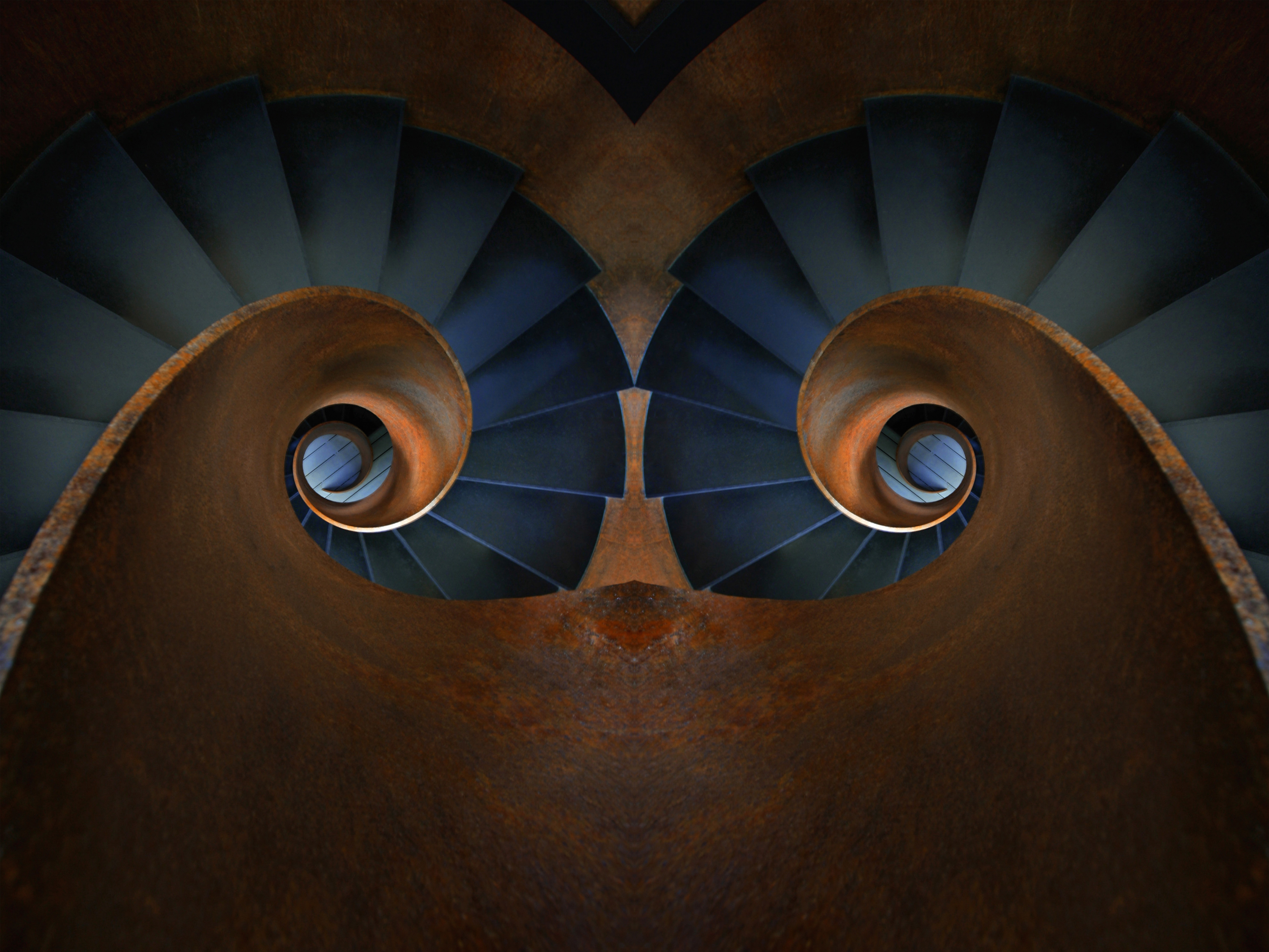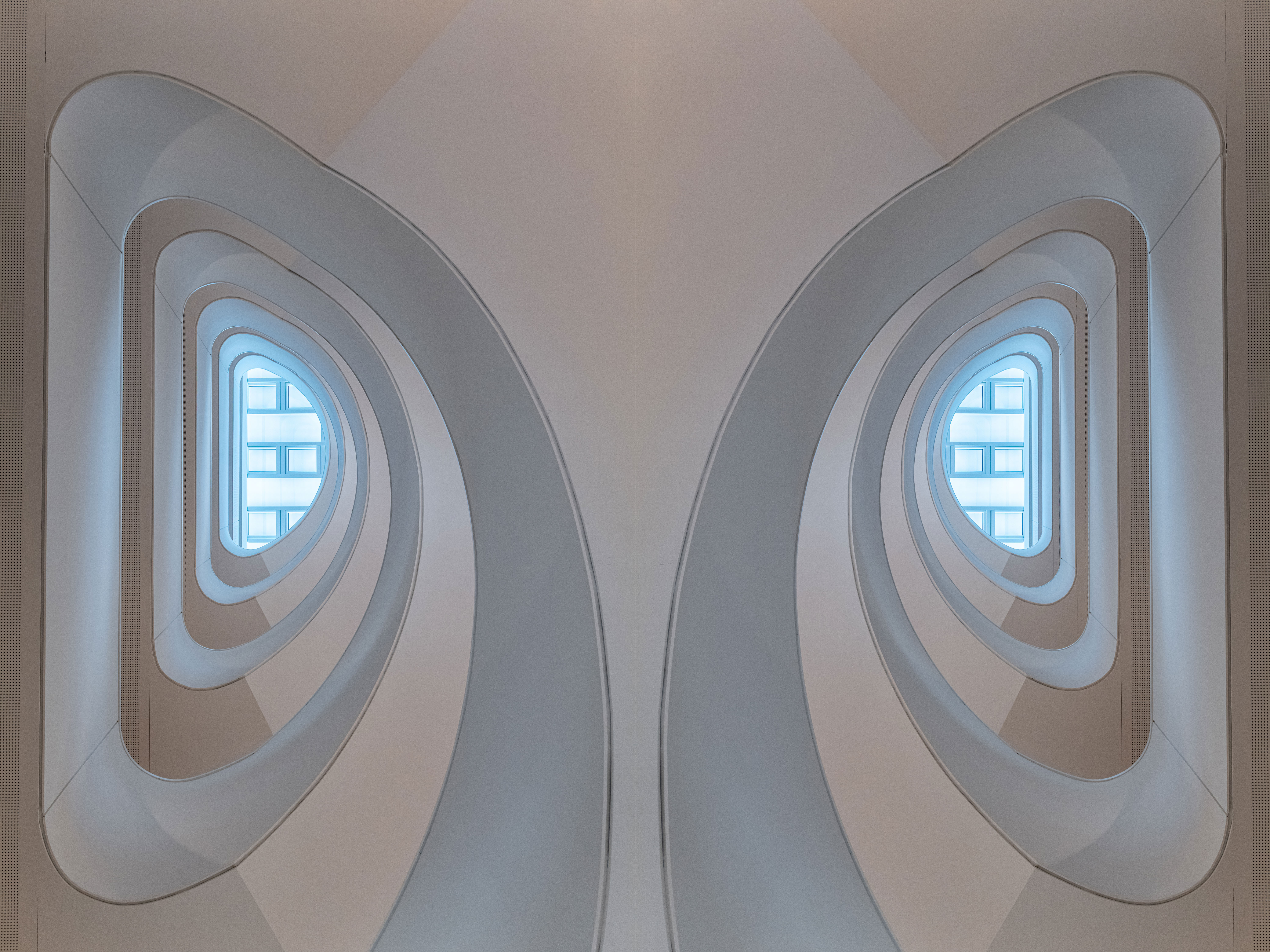 This series uses mirrored staircases to create a visual illusion of endless spatial extension. The spiral shapes take the form of a labyrinth, challenging viewers to enter a groundless structure that appears to have neither an entrance nor an exit. It's a metaphor for the routine and patterns of life and the eternal fight within us to find a path and purpose. Through balanced compositions, I convert well-known architecture into something abstract, and I invite the viewer to go beyond reality and to lose himself in his own dream. Beneath these seemingly harmonious structures lies a re-imagined sense of time and dimension that leaves our sense of being open to interpretation.