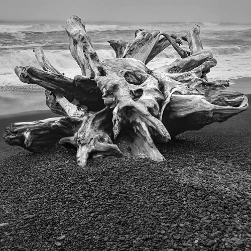 The massive cantilever hovers above the street, while the spiral ramp extends inward, creating a strong visual lead. The interplay of straight and curved lines balances the image between a sense of weight and fluidity.