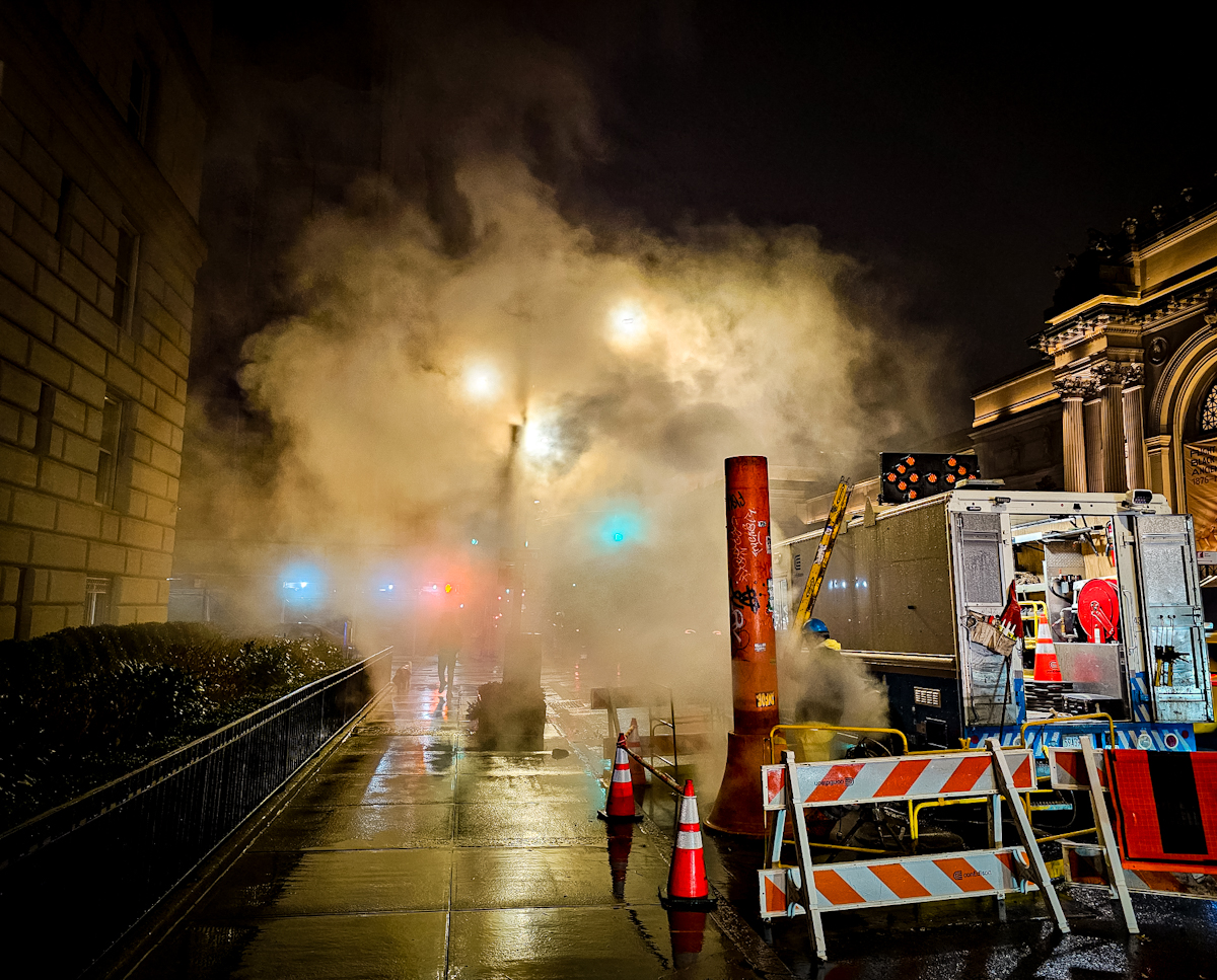 Steam rises from the streets of New York City, glowing under neon lights and drifting across wet asphalt, while the rhythm of urban life carries on around it. A fleeting reminder of the city’s raw pulse, where ordinary nights take on a cinematic edge.